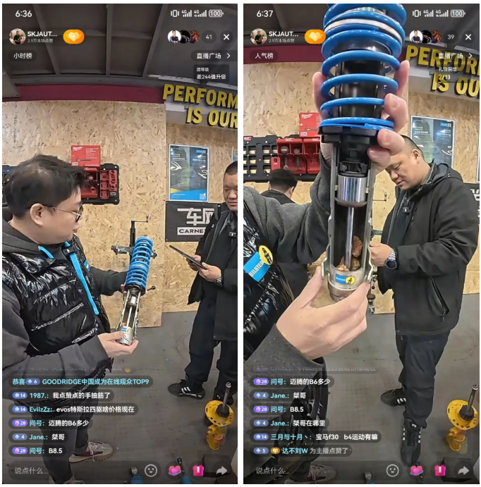 此次直播中,桀哥结合门店月销百套避震的实战沉淀,从车主实际需求出发,拆解了 “高价值底盘升级” 的底层逻辑:它并非简单的硬件替换,而是基于车辆特性与驾驶场景的系统性优化,从避震器的阻尼设定到底盘整体的动态匹配,每一步都需要专业技术与经验支撑。